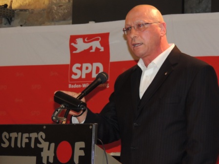 150 Jahre alt wird die SPD dieses Jahr. Der diesjährige Redner auf dem Lichtmess Empfang der SPD Rems Murr im Beutelsbacher Stiftskeller, Uwe Hück, Gesamtbetriebsratsvorsitzender der Porsche AG, zählt deren 50 Lenze – und die haben es in sich. Aufgewachsen im Kinderheim, danach Sonder- und Hauptschule, Ausbildung zum Lackierer bei Porsche, Europameister im Thai- Boxen und schließlich Betriebsratsvorsitzender. Hück musste immer kämpfen, und so steht einer am Pult, der wahrlich kein Mikrophon braucht. Einer, der es gewohnt ist Tacheles zu reden.