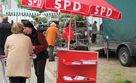 Dr. Karin Gürtler und Claudia Eichert waren gemeinsam beim Infostand, das Interesse war groß – sehr viele Bürgerinnen und Bürger wissen schon, dass am 25. Mai Kommunal-, Regional- und Europawahlen sind. Gerne nahmen sie die Prospekte mit, in denen die Kandidatinnen und Kandidaten vorgestellt werden.