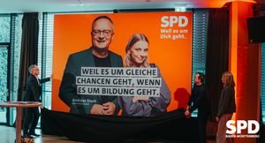 Mit inhaltlich klarem Profil und nah an der Lebensrealität der Menschen im Land – so startete die SPD Baden-Württemberg in den Wahlkampf zur Landtagswahl 2026. In der Böblinger Kongresshalle präsentierte die Partei erstmals ihre Großflächenplakate und stellte das Narrativ der Kampagne vor: „Weil es um Dich geht.“ Im Mittelpunkt der Kampagne stehen die Menschen im Land – ihre Arbeit, ihre Familien und ihre Zukunft.