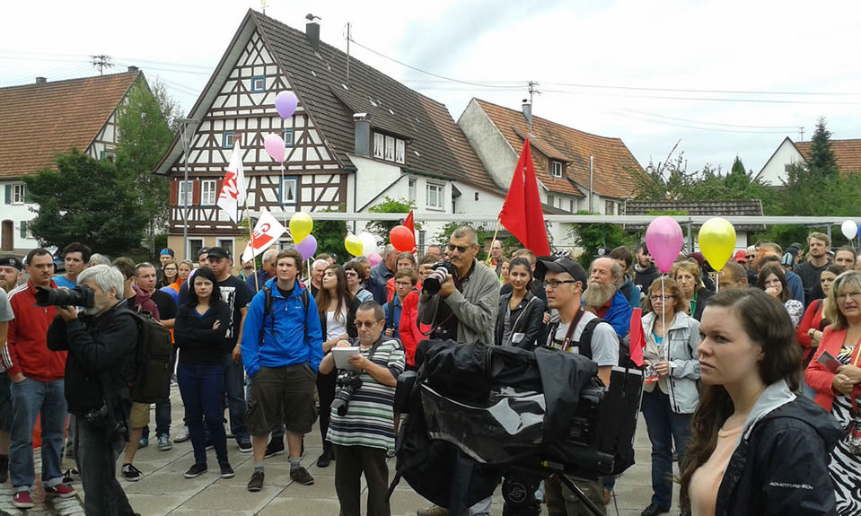 Da sich nun die Anzeichen konkretisierten, dass der Kauf der Immobilie kurz vor einem möglichen Abschluss stehe, schaltete sich der SPD-Kreisverband Zollernalb aktiv ein: mit einem Aufruf an alle Mitglieder galt es bei der Kundgebung am Samstag, den 15. August 2015, gegen die NPD und ihre geplante Landesgeschäftsstelle auf den Marktplatz in Meßstetten Flagge zu zeigen.