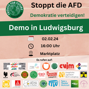 Der SPD-Kreisverband Ludwigsburg ruft nach einer erfolgreichen Demonstration am vergangenen Sonntag für Demokratie und Menschenrechte auf dem Ludwigsburger Rathaushof auch zur Teilnahme an der geplanten Demonstrationen gegen rechts an diesem Freitag, 2. Februar, um 16 Uhr auf dem Marktplatz auf.