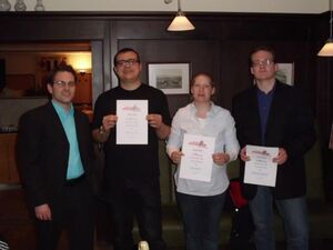 Kreisvorsitzender Bernd Majer freute sich, in diesem Jahr drei Ehrungen für 10 jähriges Engagement bei den Jusos durchführen zu dürfen: Irina Herth, Marius Thoy und Manuel Schmoll