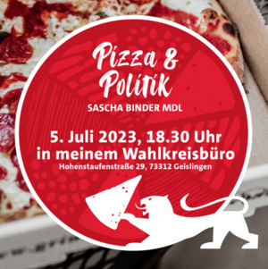 Direkte Gespräche über Politik und junge Themen: Das erwartet die Gäste bei „Pizza & Politik“ am Mittwoch, 5. Juli 2023, um 18.30 Uhr im Wahlkreisbüro des Geislinger Landtagsabgeordneten Sascha Binder (SPD). „Ihr bringt die Themen, ich die Pizza“, so Binder zu seiner Einladung an alle interessierten Jugendlichen.